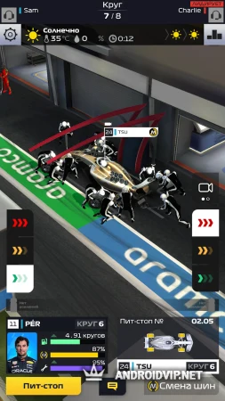 Во время заездов вы сможете следить за процессом в реальном времени, и также участвовать в процессе. Регулярно понадобится менять тактику, отдавая команды пилоту, также периодически нужно останавливаться на пит-стопы, где предстоит выбирать виды шин, в зависимости от ситуации.