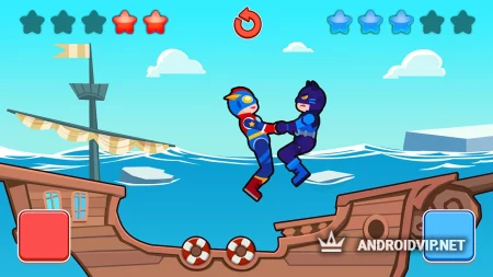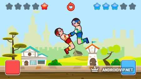 Перед началом борьбы, вам нужно лишь подготовиться нажимать на кнопку, от которого ваш герой просто прыгает или пытается оттолкнуться ногами. Таким образом, понадобится выждать такой момент, чтобы можно было закрутить персонажей, и ловко повалить вашего соперника на землю. Удобнее это делать когда вы находитесь не лету, но стоит быть внимательным, чтобы противник не сумел сделать то же самое с вами.