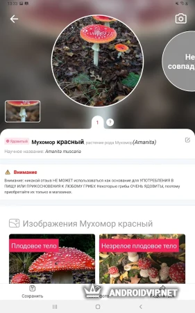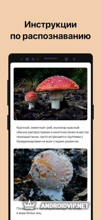 Данное приложение станет хорошим ассистентом во время вашего похода. Для того, чтобы распознать, что за гриб оказался перед вами, достаточно будет сфотографировать его, после чего вы увидите либо несколько подходящих вариантов с названием и описанием, либо уже конкретный, при сто процентном совпадении. А для лучшего определения есть целый список инструкций, как понять что перед вами именно тот гриб.