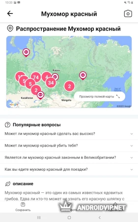 Помимо простого распознавания, вы сможете поделиться своей находкой с другими пользователями, где даже можно смотреть на карте, где тот или иной гриб был обнаружен. Также получится собрать собственную коллекцию, или же воспользоваться обширной базой данной, которая регулярно пополняется!