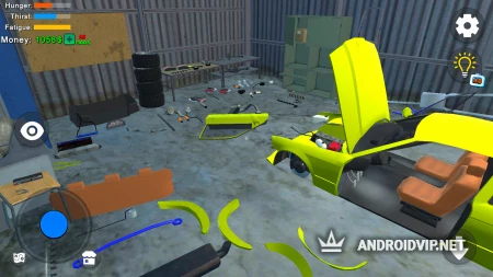 С самого начала игры вы окажетесь в своем гараже, где обнаружите практически полностью разобранный автомобиль. Вы сразу же сможете заняться сборкой, где деталей в общей сложности может быть более 70 штук. Возьмите бампер, крылья, двигатель, двери и другие запчасти, чтобы поставить их на свои места. После этого вы сможете сесть за руль вашей машины, и отправиться исследовать близлежащие окрестности.