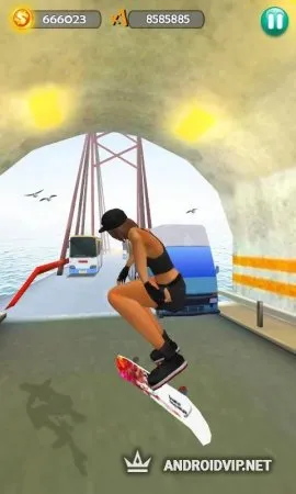 Прокатитесь по городу, наслаждаясь видами поселков, тоннелей, мостов и заливов. Выполняйте ошеломительные трюки: перепрыгивайте через машины, выполняйте различные выкрутасы во время полета, спрыгивайте с многоэтажных зданий. При этом не забывайте выполнять задания, которые предлагает вам игра. Во время прохождения также необходимо собирать мистические чемоданы, в которых хранятся некие драгоценные предметы.