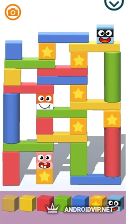 В игре вы сможете свободно пользоваться всеми возможностями, где в основном в вашем распоряжении будут разноцветные кубики. Попробуйте накладывая их друг на друга построить башню, или же домик. Если же вы поставите кубики одинакового цвета рядом, то они объединяться и превратиться в другую фигуру, сначала в прямоугольник, потом треугольник и так далее.