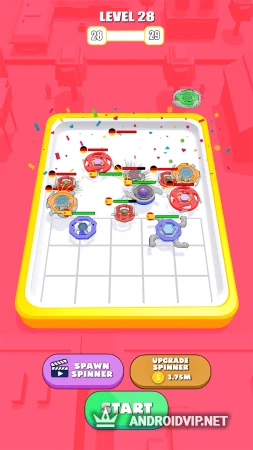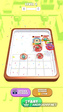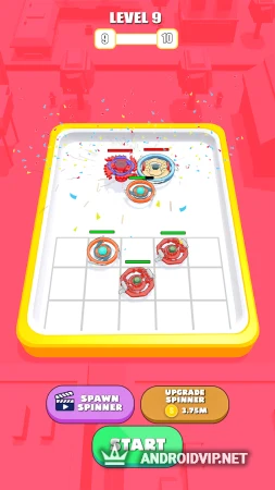 Каждый новый уровень начинается с объединения и создания обновлённых спиннеров. Для этого приобретайте и размещайте на поле битвы спиннеры, соединяйте друг с другом одинаковые и открывайте более мощные модели. Чем выше уровень двух изначальных спиннеров, тем более крутые виды вы сможете открывать.